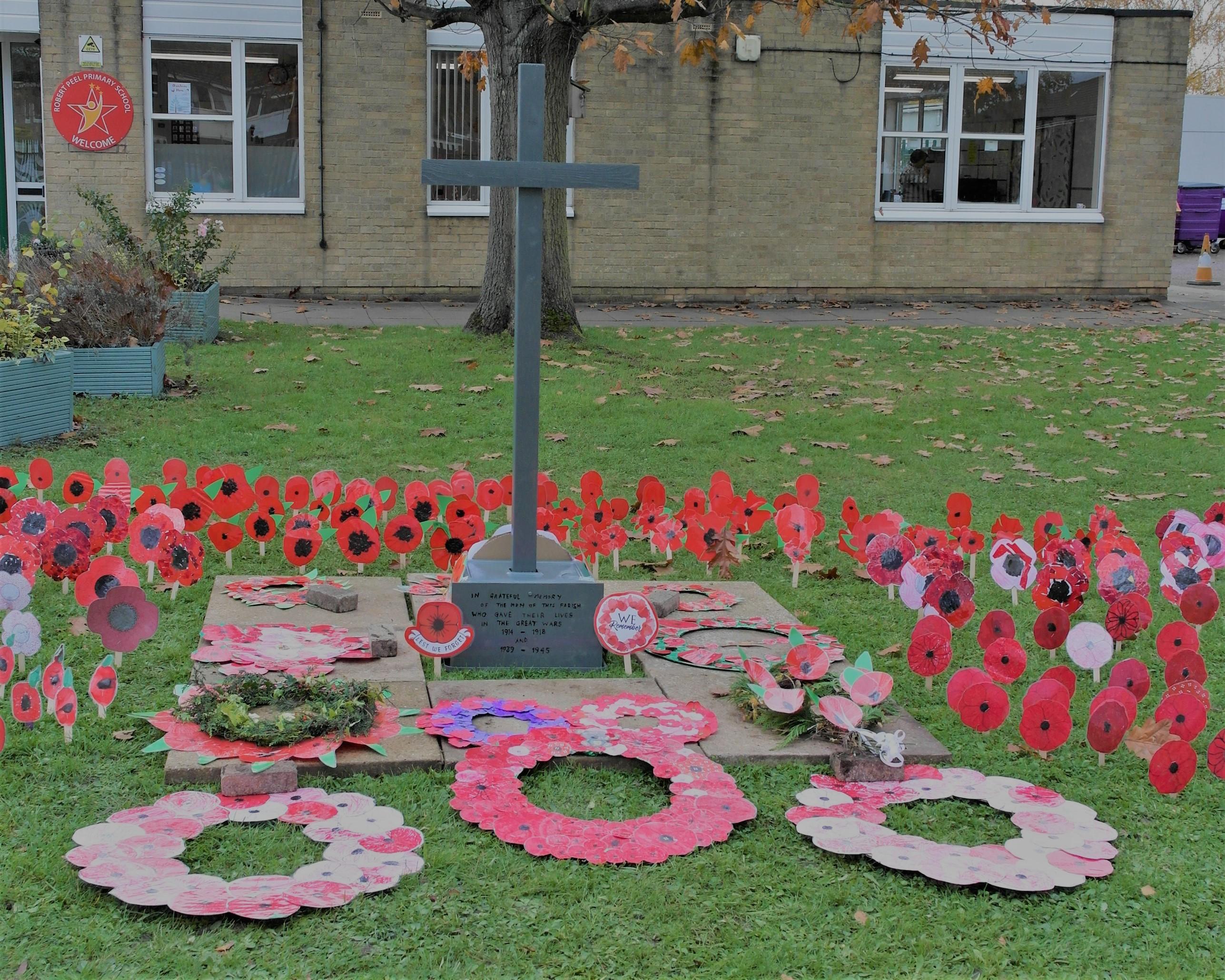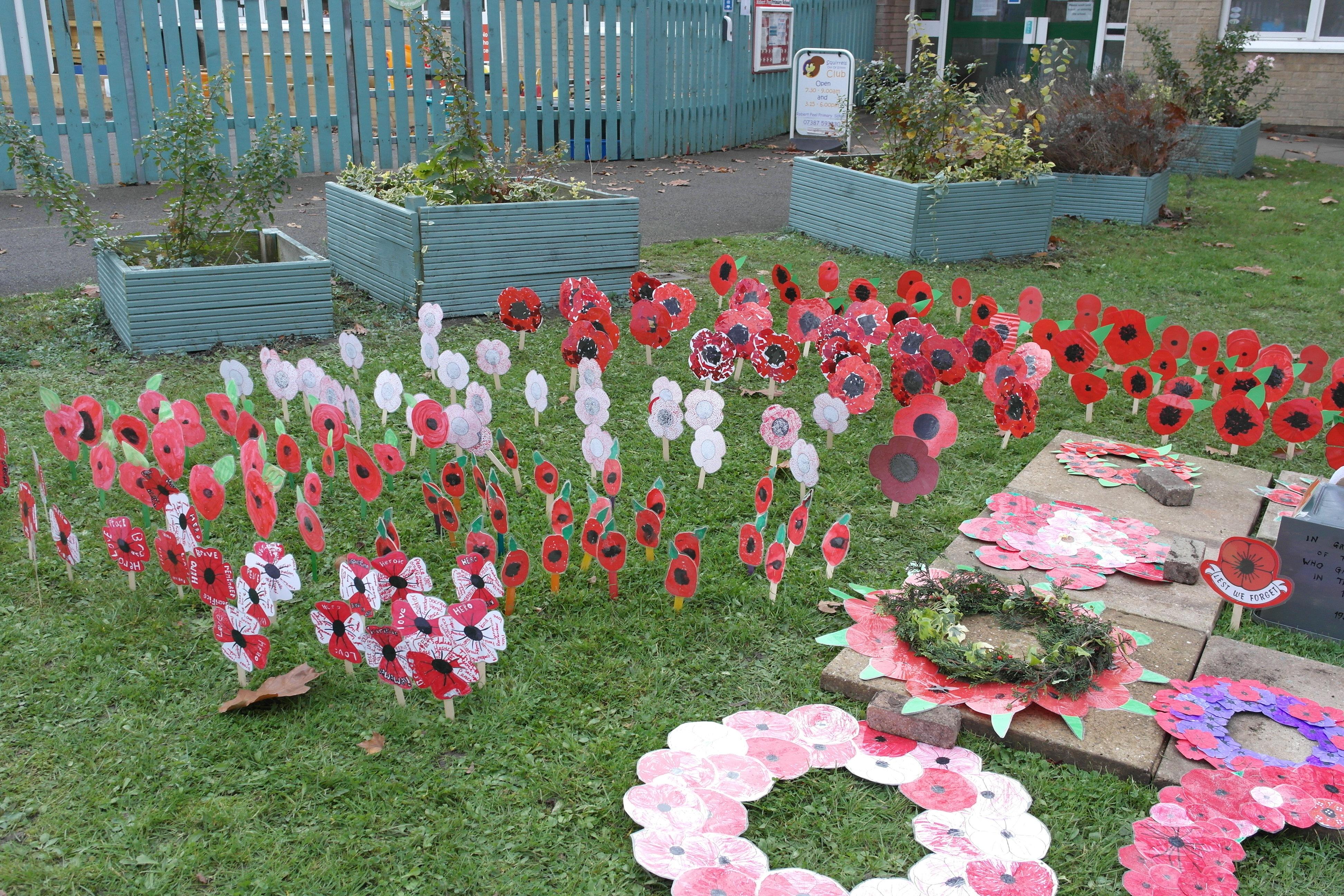 As part of our acts of remembrance we have again created our Garden of Remembrance at the front of the school. The children and school staff wanted to again make sure that we paid our respects to remember the fallen and serving members of the armed forces of past and present conflicts.