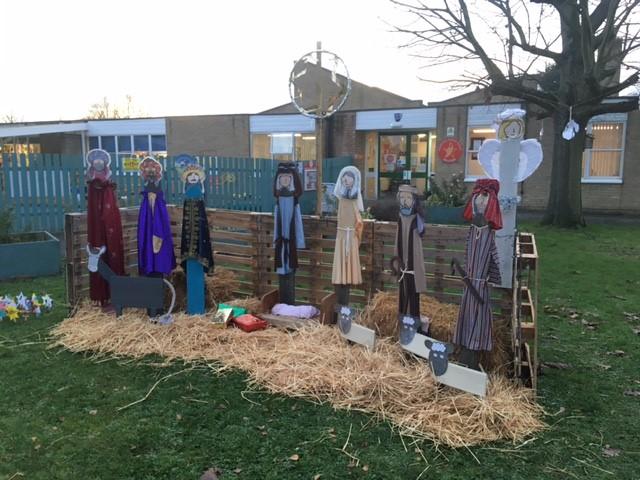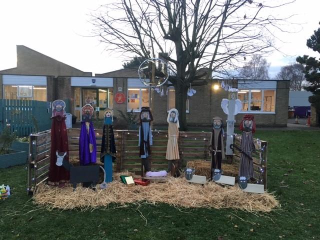 A Nativity Scene and Winter Wonderland has been created by the children and staff, with the children creating a field of wishing stars, waddles of penguins and the trees are covered in baubles and icicles.