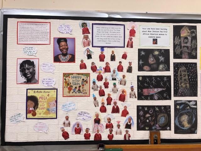 As a celebration of the children's learning a whole school display has been created in the hall.