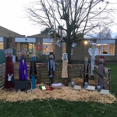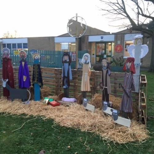 A Nativity Scene and Winter Wonderland has been created by the children and staff, with the children creating a field of wishing stars, waddles of penguins and the trees are covered in baubles and icicles.