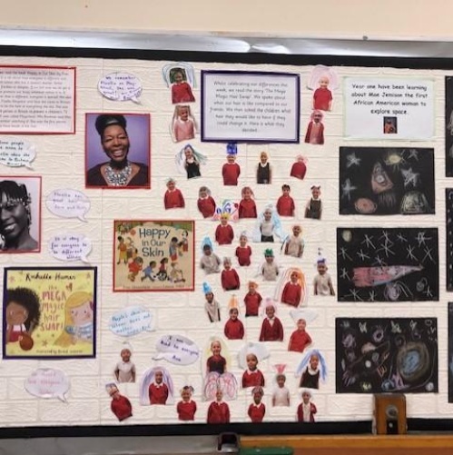 As a celebration of the children's learning a whole school display has been created in the hall.